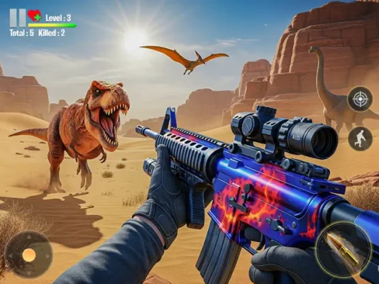 Welcome to the thrilling realm of the Dinosaur Hunting World Game, where you can immerse yourself in a wild Jurassic safari right from your device. Prepare for an exhilarating experience as you engage in the ultimate dinosaur shooting game that promises to keep your adrenaline pumping.