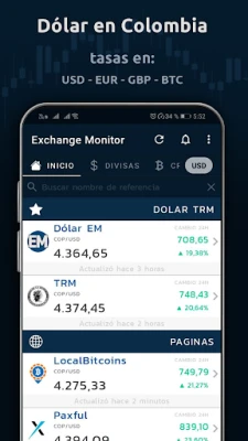 To enhance your experience, the app includes advanced search and filtering options. This functionality allows for rapid information retrieval, making it easier to find the specific rates you need. Additionally, you can calculate all rates in your preferred currency—be it the dollar, euro, pound, bitcoin, or any other listed currency. This unique feature is available exclusively through Exchange Monitor Colombia, setting it apart from other currency tracking applications.