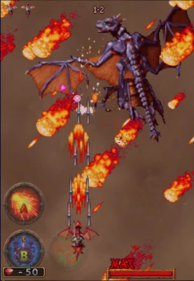 Players can unleash bomb attacks, which are visually spectacular screen-clearing spells that vary depending on the rider-dragon combination. Bombs not only eliminate enemy bullets but also deliver massive burst damage to bosses, serving as both offensive and defensive tools in the heat of battle.