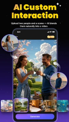Combine two separate photos into one cohesive group shot with ease. Whether you want to pose with friends, family, or even celebrities, DreamVid makes it possible with just one tap.