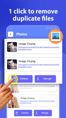 The Image Feature of the Duplicate File Remover allows users to detect and delete duplicate images stored on their devices. After processing, the app identifies duplicate images, enabling users to delete or merge them with ease. This feature is particularly useful for photographers and anyone who frequently takes pictures.
