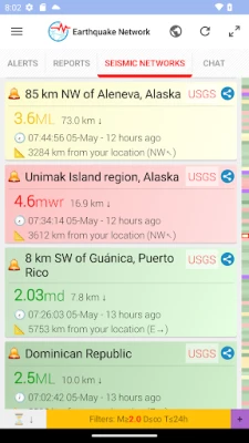 It is important to note that data from national and international seismic networks often comes with a delay, ranging from a few minutes to several hours. This lag can hinder timely responses during an earthquake. In contrast, the Earthquake Network application provides immediate alerts, bridging the gap and ensuring that users are informed as quickly as possible.