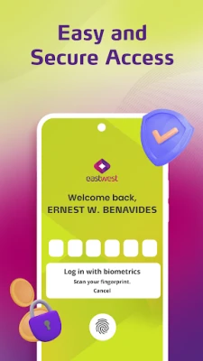 Your security is paramount. The EastWest mobile banking app offers easy and secure access to your accounts. You can log in using a 6-digit passcode, or take advantage of advanced biometric options like fingerprint recognition or Face ID for Android users. This multi-layered security approach ensures that your financial information remains protected while providing you with quick access to your accounts.