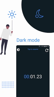 To enhance your user experience, Easy Stopwatch includes a dark mode option, perfect for reducing eye strain during nighttime use. Simply tap the top left corner of the app to switch between light and dark modes, or choose to follow your device’s default settings. Enjoy a comfortable viewing experience no matter the time of day!