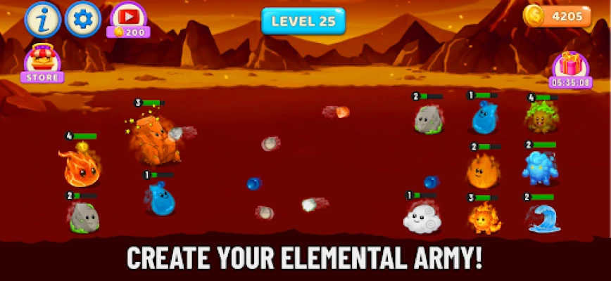 Build your formidable elemental army, explore new combinations, and rise to become the strongest force in Elemental Merge Battle. Download the game now and embark on your epic journey through the captivating world of elements!