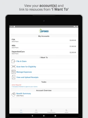 Additionally, the app allows you to view claims that require receipts, ensuring you never miss a step in the reimbursement process. Need assistance? You can click to call or email Customer Service directly from the app, making it easier to get the help you need.