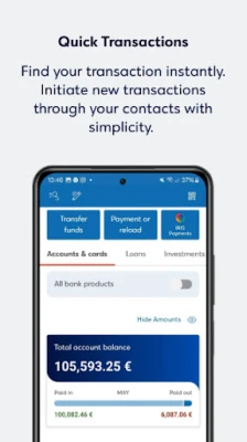 The app enhances your transactional experience by allowing you to access not only the contacts saved on your phone but also those stored in your e-Banking account. This feature simplifies the process of completing transactions, making it easier to send money to friends, family, or business associates.