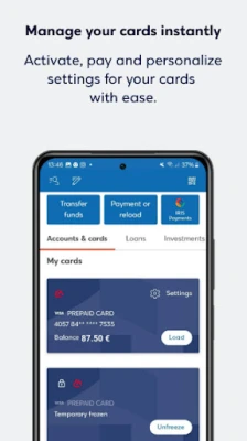 Managing your cards is straightforward with the Eurobank Mobile App. From your dashboard, you can activate, pay, load, and even temporarily deactivate your cards. This level of control ensures that you can handle your finances on your terms, providing flexibility and convenience.
