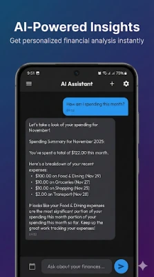 Your financial data remains entirely on your device, ensuring complete privacy. The AI features operate solely through the API key you provide, giving you full control over your information.