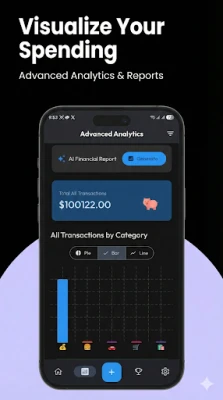 Understand your financial landscape with detailed reports. The app provides weekly, monthly, and yearly summaries, along with visual aids like pie charts, bar charts, and daily spending timelines to help you analyze your spending patterns.