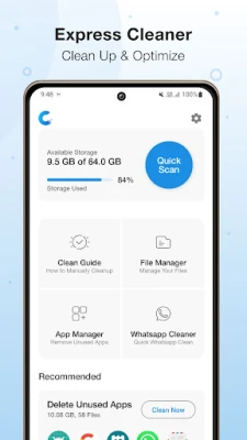 Express Cleaner is an application that offers powerful tools to help free up valuable storage space on your mobile device. With just one tap, you can easily remove temporary files, app cache, and browsing history, making it a quick and convenient way to keep your device running smoothly.