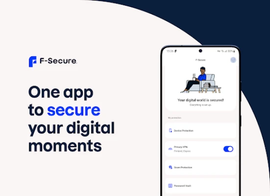 F-Secure all-in-one security is an application that provides comprehensive protection for all your digital moments. It combines antivirus, VPN, password management, and identity protection into one easy-to-use app. You can choose the subscription that best fits your needs or get all the features in one app.