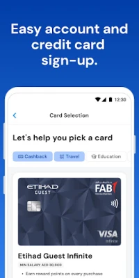 Embark on your banking journey with FAB right from the comfort of your home. Simply download the app to open an account and apply for a credit card without ever stepping foot in a branch. All you need is your Emirates ID to get started.