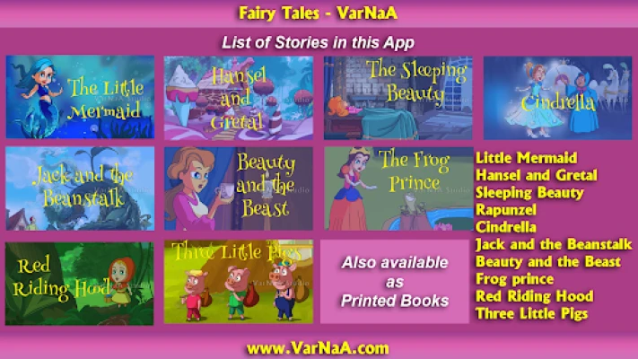 The full version of the Fairy Tales - VarNaA app features an impressive collection of timeless stories that have enchanted generations. Here’s a glimpse of the magical tales you can explore: