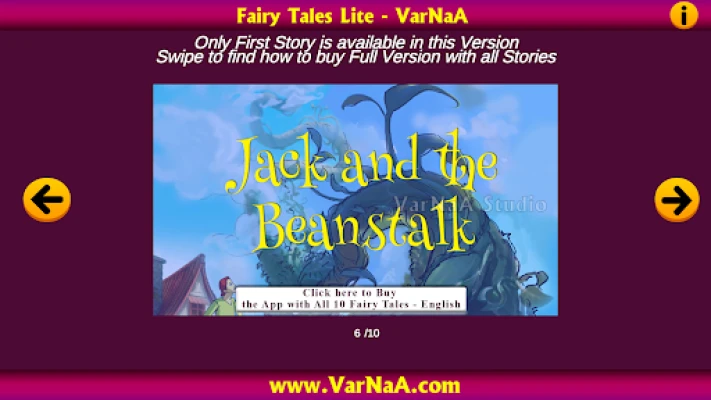 Immerse yourself in the magical world of fairy tales with the Fairy Tales - Lite - VarNaA app. While this free version offers a single captivating story, the full experience awaits you in the premium version, Fairy Tales - VarNaA. This comprehensive app is a treasure trove of beloved tales that will delight readers of all ages.