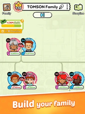In Family Go!, your journey begins with a single character. As you navigate through life-altering choices, you will influence the trajectory of your family's story. Will you pursue love, seek wealth, chase fame, or embrace a tranquil rural lifestyle? As your family expands, each new generation presents unique opportunities, challenges, and delightful surprises.
