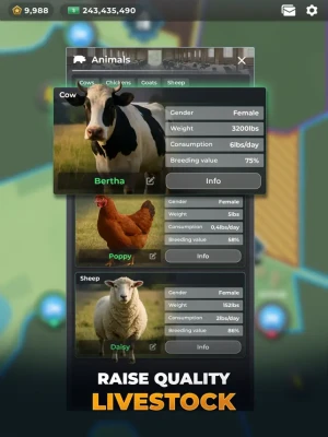 Embark on an exhilarating adventure as the ultimate Farm Manager! Strategize, expand, and cultivate your lands in this immersive farm management game. Whether your ambition is to operate a quaint farm or dominate a global agricultural empire, the adventure is yours to create. Prove your mettle and outshine friends and real-life managers to ascend the leaderboards by building the most prosperous empire.