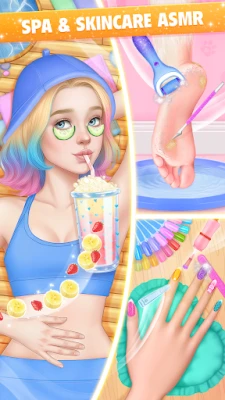 Visit the Body Spa Salon and indulge in full-body pampering. Enjoy relaxing massages and apply hydrating creams to keep your skin fresh and glowing. Become a beauty care expert in this offline fashion spa game. Don’t forget to stop by the Manicure Salon to decorate your acrylic nails and treat your tired feet at the Foot Spa Salon for the ultimate pedicure experience. It’s self-care time in this realistic makeover ASMR game designed for beautiful girls!