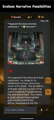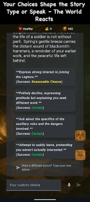Your personal AI Dungeon Master curates quests, conflicts, and events tailored to your actions. Engage in peace negotiations, lead uprisings, hunt mythical creatures, or weave intricate plots of courtly intrigue—each playthrough offers a fresh and unique experience. The narrative evolves based on your decisions, ensuring that every adventure is distinct and captivating.