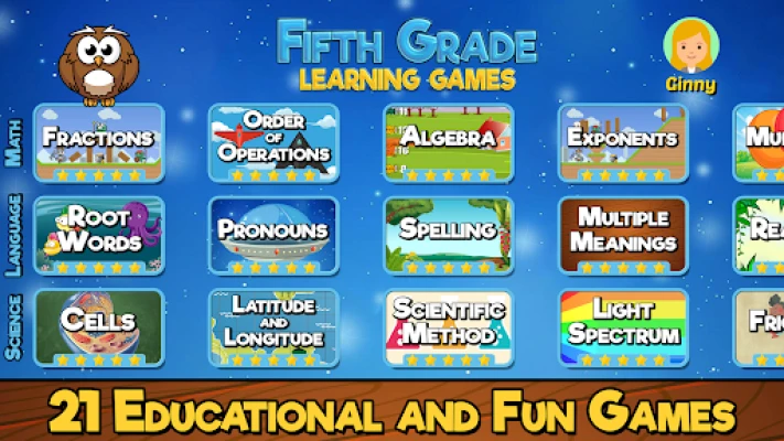 21 fun and educational games to help your child learn 5th Grade lessons! Teach them advanced 5th grade topics such as fractions, algebra, science, division, grammar, geometry, language, spelling, reading, and more. Whether they are just starting Fifth Grade, or need to review and master the subjects, this is a perfect learning tool for kids aged 9-12. Math, language, science, STEM, reading, and critical thinking skills are all tested and practiced in these games.