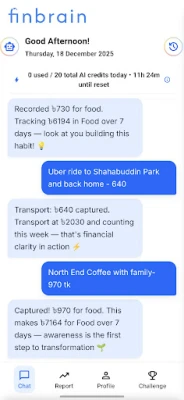 Finbrain allows you to enter your expenses naturally. Whether you’re grabbing lunch or taking a rickshaw, simply type your spending in a straightforward manner: