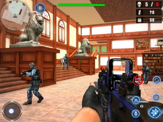 In this gripping scenario, terrorist groups have invaded a library, instilling fear among students. As the best FPS shooter with exceptional commando skills, your mission is to execute a critical gun strike against enemy soldiers to rescue the frightened students. Utilize your sniper shooting skills to aim and take down enemy troops with precision. As a pro sniper, eliminate all threats one by one and fight for survival in this intense battleground.