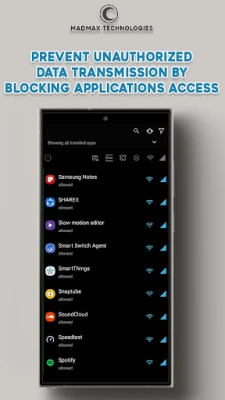 Take control of your device with the **App Blocker** feature. This functionality allows you to manage which applications can access the internet, effectively preventing unwanted background data usage and suspicious activities. By blocking internet access for specific apps, you can protect your personal data from being transmitted without your consent.