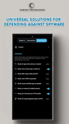 Personalize your security settings with **Customizable Rules**. This feature allows you to control which applications can access mobile data or Wi-Fi, giving you full customization over your network connections. Tailor your security preferences to suit your needs and enhance your device's protection.