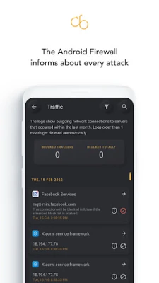 The firewall security app is equipped with daily updates for spyware detection, firewall rules, and filter lists. This proactive approach effectively protects against spyware and various monitoring applications, such as GPS trackers and Remote Access Trojans (RATs). By staying ahead of potential threats, you can navigate the digital landscape with confidence.