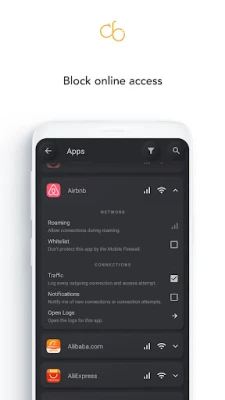 - Real-time notifications: Alerts you when an app attempts to access the internet.