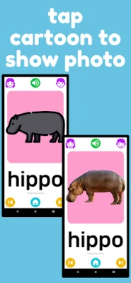 Children can expand their vocabulary significantly, learning more than 500 simple first words in English. The app features a plethora of images, with each flashcard showcasing a charming cartoon that captures your child's interest. By tapping on the cartoon, they can view a photograph of the real-world object, reinforcing their learning through visual association. The app offers a choice of male and female voices, allowing kids to hear words spoken by a man, woman, boy, or girl, making the learning experience more relatable and fun.