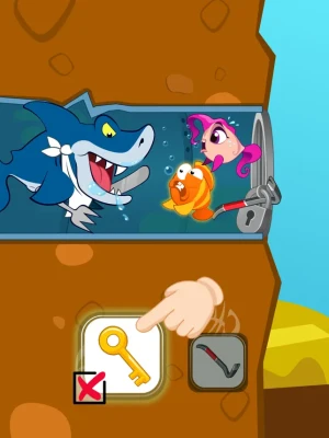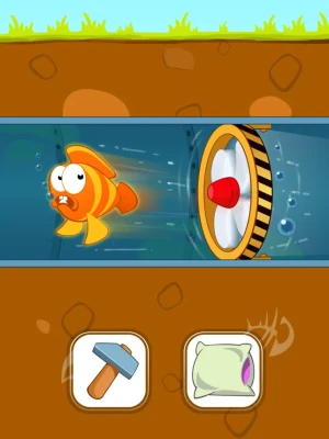 - Pull the Pin: Strategically pull pins to help the fish escape from lurking sharks and rescue his princess.