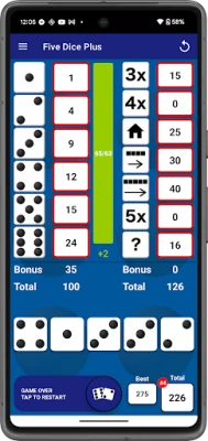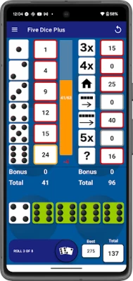 Five Dice Plus is a dice game similar to YAHTZEE*, but with a twist - you can accumulate unused rolls from each turn.