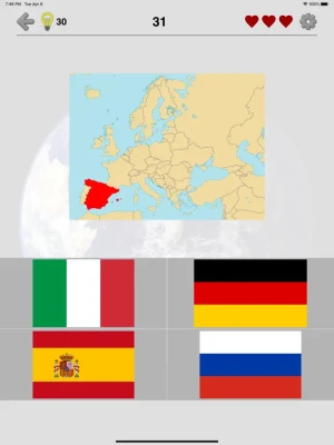 This app is available in 30 languages, including English, German, Spanish, and many more. This feature allows you to learn the names of countries and capitals in various languages, enhancing your global knowledge.