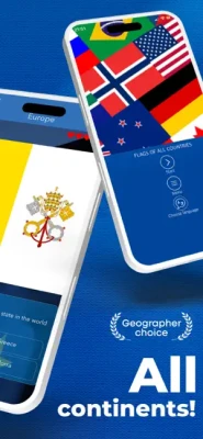 Can you identify the flags of Europe or Asia? Do you know the unique symbols representing the diverse nations of Africa? With this free educational app, you can challenge yourself and expand your knowledge of global flags. The app categorizes flags by continent, making it easy to navigate through Europe, America, Asia, Africa, and Oceania.