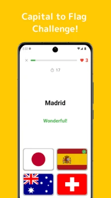Enjoy a seamless and intuitive experience with "Flags Quiz: World Countries." The app features a user-friendly interface that provides clear feedback on your answers, guiding you through your learning journey. This design makes it easy for users of all ages to navigate and engage with the content.
