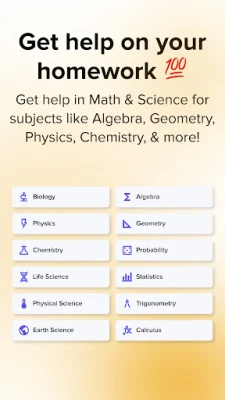 - ✔️ Science Tutoring: Master physics, biology, and chemistry through step-by-step guidance.