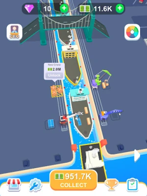 Your terminal is equipped with ten powerful cranes, each designed to load cargo onto waiting vessels. Mastering the use of these cranes is essential for increasing your profits. As you load ships with precision, watch your earnings soar. The more efficiently you operate your terminal, the more ships you can send off, leading to greater financial rewards.