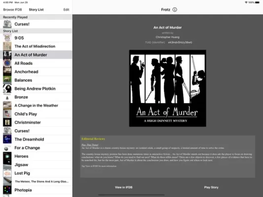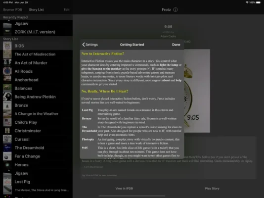 To begin your journey into the world of Interactive Fiction, simply download Frotz from the App Store. Once installed, you can browse through the extensive library of games and select titles that pique your interest. Whether you’re revisiting old favorites or discovering new adventures, Frotz provides an engaging platform for all your text-based gaming needs.