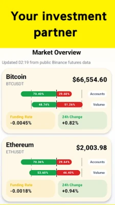 - Live Market Overview: Instant access to market data for BTC and ETH.