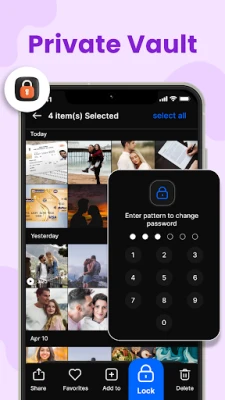 Protect your sensitive images and videos by moving them into a secure gallery vault. With options to set a PIN, pattern, or fingerprint lock, you can ensure that your private media remains hidden from prying eyes.