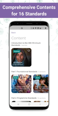The GBV Minimum Standards app is designed to be user-friendly and accessible, offering a range of features that support practitioners in the field: