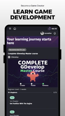 GDevelop makes game development straightforward, even for those with no prior experience. Download the app and join a thriving community of over 400,000 monthly creators, including gamers, hobbyists, educators, and professionals. With GDevelop's unique design, game creation becomes a fast and enjoyable process.