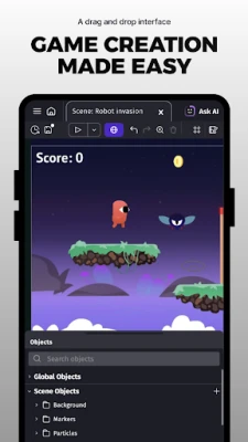 GDevelop is the first game creation app that allows you to build and play any game you envision directly on your mobile device. Here’s what you can expect: