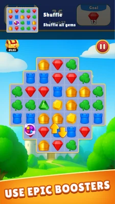 When faced with particularly tough levels, Gem Magic provides a variety of boosters to help you succeed. These free tools can be used strategically to smash through obstacles and clear levels more efficiently. Whether you need an extra push or a powerful combo, the boosters are there to assist you on your magical journey!
