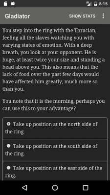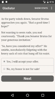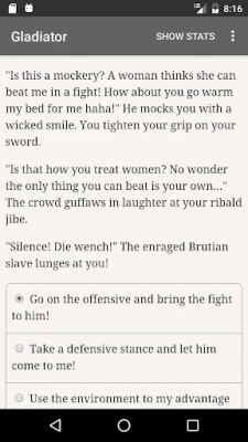 One of the standout features of "Gladiator: Road to the Colosseum" is its unique character tracking system. This innovative approach ensures that each playthrough is distinct, with different outcomes based on your choices. The depth of the narrative allows for multiple endings, encouraging players to explore various paths and discover new facets of the story with each attempt.