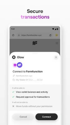 Glow prioritizes your security by simulating all transactions before submission. This feature checks for any malicious activity and automatically blocks suspicious requests, providing peace of mind during transactions.