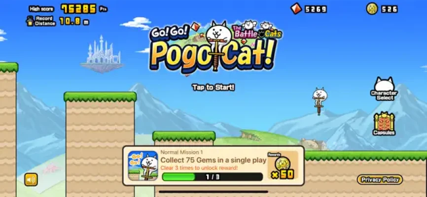 Challenge yourself by taking on missions displayed on the main screen. Completing these tasks not only earns you bonus rewards in Go! Go! Pogo Cat but also in the original The Battle Cats app! Are you ready to prove your skills as a hopping master? With five missions available, you can reap fantastic rewards in The Battle Cats.