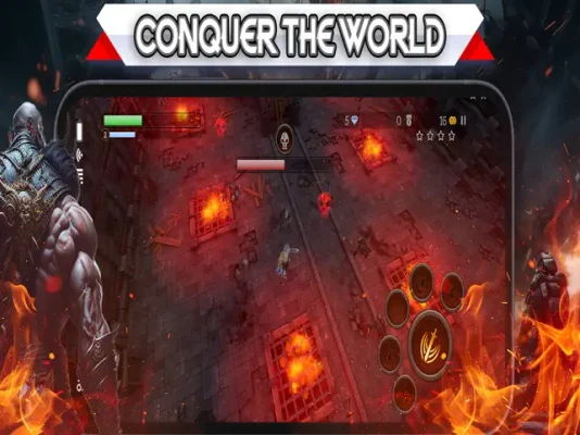 Experience a gaming interface designed specifically for mobile devices. Kratos - God of Battle features fluid tap and swipe controls that allow for seamless execution of merciless chain attacks and combos. The entire screen is at your disposal, ensuring that you can focus on the action without any distractions. This intuitive control scheme makes it easy for both newcomers and seasoned players to engage in fast-paced combat, enhancing the overall gameplay experience.