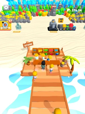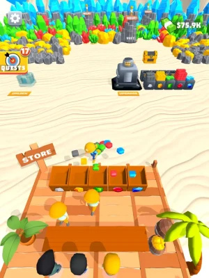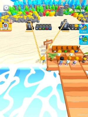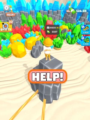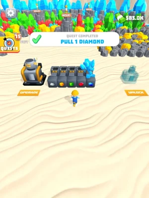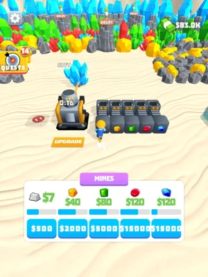 Pull valuable mines and upgrade your machines. Save people from and make them work for you....